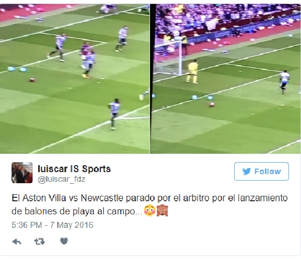 “La loro squadra è già matematicamente retrocessa da metà aprile, ma i tifosi dell’Aston Villa chiedevano un dignitoso finale di stagione ai loro calciatori. Undici sconfitte consecutive nelle ultime dodici partite, però, hanno fatto traboccare il vaso. Così, nel secondo tempo della partita – terminata 0-0 – contro il Newcastle di Rafa Benitez (altra squadra che, dopo il risultato di ieri, è a un passo dalla Championship), dalle tribune sono volati in campogonfiabili di ogni forma. La partita è stata sospesa e le proteste sono andate avanti anche all’esterno dello stadio”.