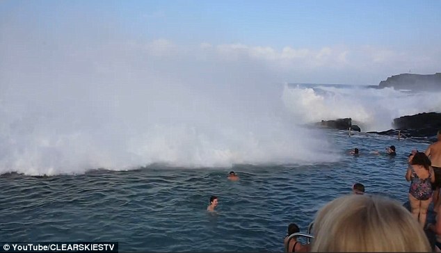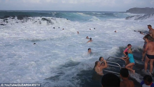 KIAMA – I bagnanti stanno facendo un tranquillo bagno in una piscina naturale scavata nella roccia a Kiama sulla costa orientale dell’Australia, poco più a sud di Sydney. Improvvisamente, adulti e bambini vengono sorpresi da un’onda gigante, provocata dal ciclone tropicale “Winston” che ha colpito nei giorni scorsi l’Australia.