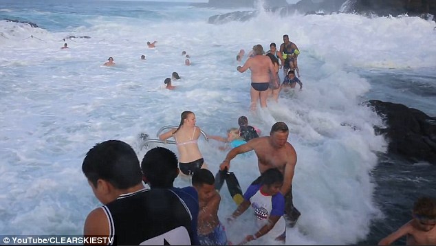 Secondo i media locali, alcuni bagnanti hanno riportato ferite leggere, tra cui tagli, escoriazioni, lividi. Come scrive il Daily Mail che pubblica il video, dopo che l’onda colpisce i bagnanti, molti di essi scompaiono per un attimo sotto la forza dell’acqua per poi riapparire. Nel filmato si vede anche le persone che erano nella vasca che provano a non venire sbattuti sulla costa e si sentono le urla.