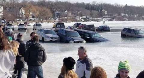 LAKE GENEVA – YOUTUBE Auto su lago ghaicciato: si alza la temkperatura e le auto finiscono giù. La superficie ghiacciata del Geneva Lake che si trova in Wisconsin negli Stati Uniti si è rotta a causa del peso delle auto parcheggiate e per un improvviso aumento della temperatura, salita sopra zero gradi, cosa insolita in questo periodo dell’anno. Nella località era in corso un Winterfest: ad affondare nel lago sono almeno 12 auto.