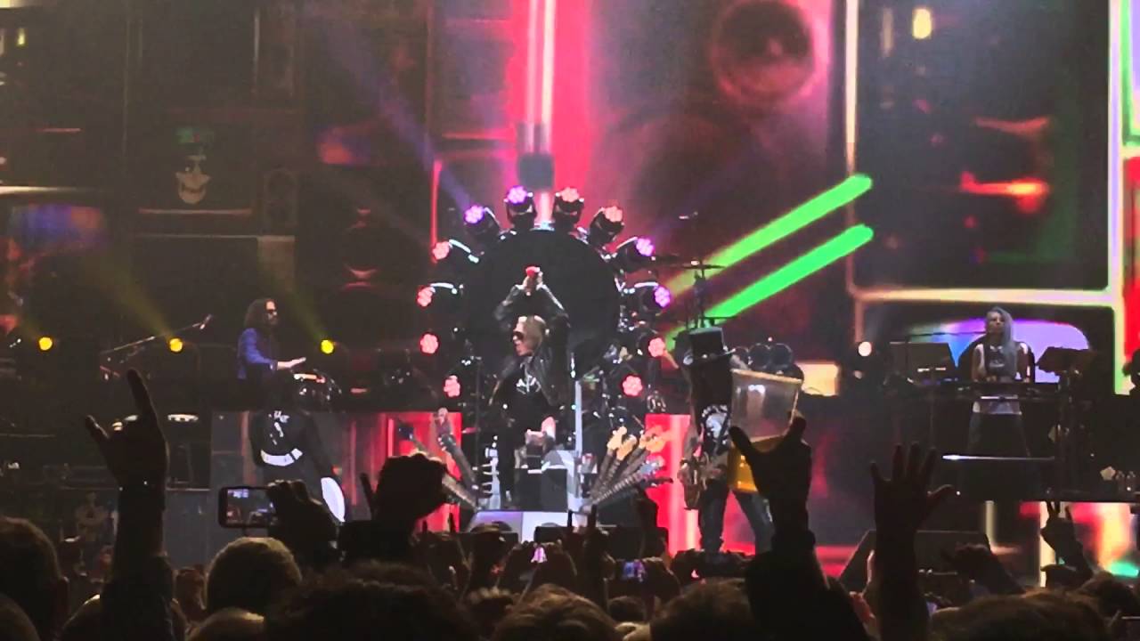 Il gruppo composto da Axl Rose, Slash e Duff McKagan si è esibito nel club Troubadour, uno dei luoghi dove i Guns N’ Roses mossero i primi passi verso il successo. Il gruppo aveva dato il suo ultimo concerto il 17 luglio del 1993 a Buenos Aires. Secondo la rivista ‘Rolling Stone’ Rose e il chitarrista Slash, 50 anni, sono stati in disaccordo per moltissimo tempo. I Guns N’ Roses hanno annunciato che realizzeranno un tour per 21 città degli Stati Uniti durante tutta la primavera. E l’8 aprile, la band si è ritrovata insieme su un palco di Las Vegas. Axl Rose ha cantato seduto su una specie di trono, che gli è stato prestato da David Grohl dei Foo Fighters che lo aveva usato quando anche l’ex Nirvana si era rotto la gamba. Sulla gamba del cantante si vede chiaramente un tutore.
