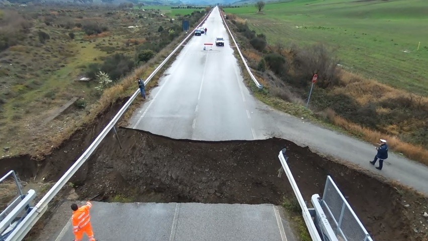 MATERA – Il ponte sulla strada statale Saurina, vicino Stigliano in provincia di Matera, è crollato dopo le forti piogge che si sono abbattute sulla Basilicata. L’ondata di maltempo che ha investito la regione ha creato situazioni difficili soprattutto nel Metapontino, dove nonostante il miglioramento delle condizioni atmosferiche le scuole sono rimaste chiuse la mattina del 18 marzo. Oltre alla statale altre strade sono state chiuse e a Scanzano Jonico non è consentito il transito attraverso il sottopasso di collegamento con la statale Jonica e la Fondovalle dell’Agri.