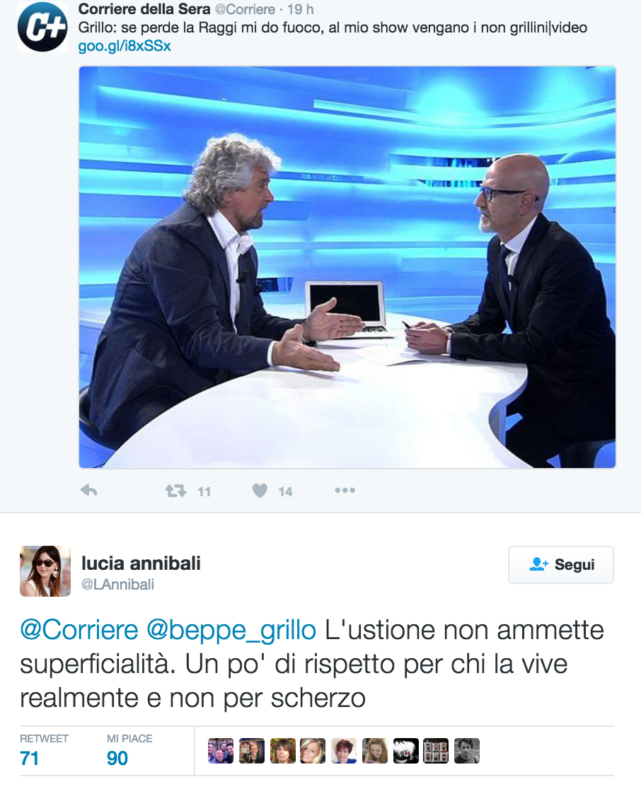 Lo sketch non fa ridere il Partito Democratico, che alza il tiro contro il “rito iniziatico blasfemo”, come lo definisce la responsabile della Comunicazione del partito, Alessia Rotta. “Pur di attirare l’attenzione su di sé arrivano addirittura a mettere in scena una parodia blasfema. Chiedano scusa e si vergognino”, afferma il vicesegretario democratico, Lorenzo Guerini. “Mi domando come fanno a essere credibili questi signori che stanno riducendo la politica a un teatrino”, aggiunge il sottosegretario alla Presidenza del Consiglio, Luca Lotti. “Quella di Grillo – conclude il senatore Esposito – è una setta pericolosa…”.