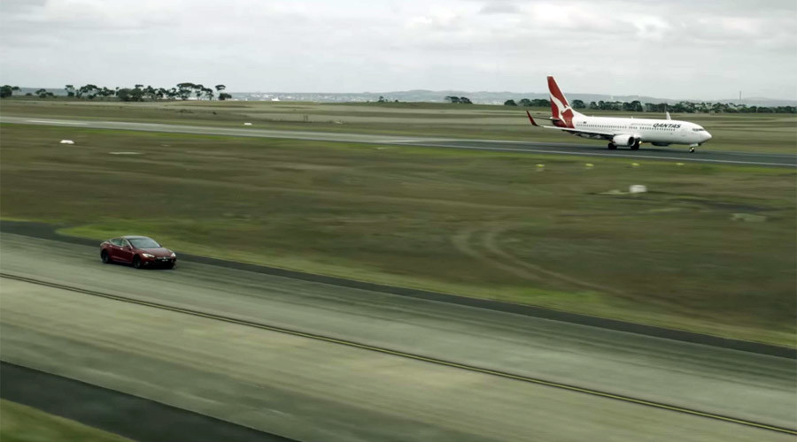 AVALON – Sfida impossibile fra un Boeing 737-800 della Qantas e una Tesla Model S P90D all’aeroporto di Avalon, in Australia.