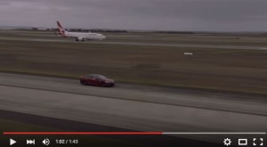 Molti si stupiranno nel constatare che a terra l’auto elettrica: in modalità “Ludicrous Mode” accelera più di quanto riesca a fare l’aereo! Come ben documentano le immagini del filmato, nei primi secondi dopo il via, la Tesla guidata dal driver Tony d’Alberto scatta, poi il Boeing la raggiunge. I due si tengono testa finché l’auto non tocca la sua velocità massima, 250 km/h, ma l’aereo la supera un attimo prima di decollare, arrivando alla bellezza di 140 nodi, circa 260 km/h.