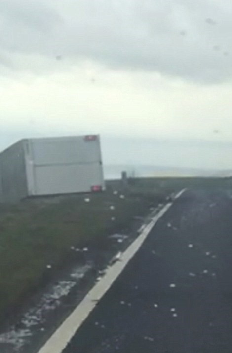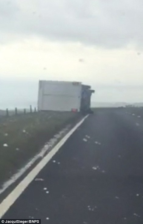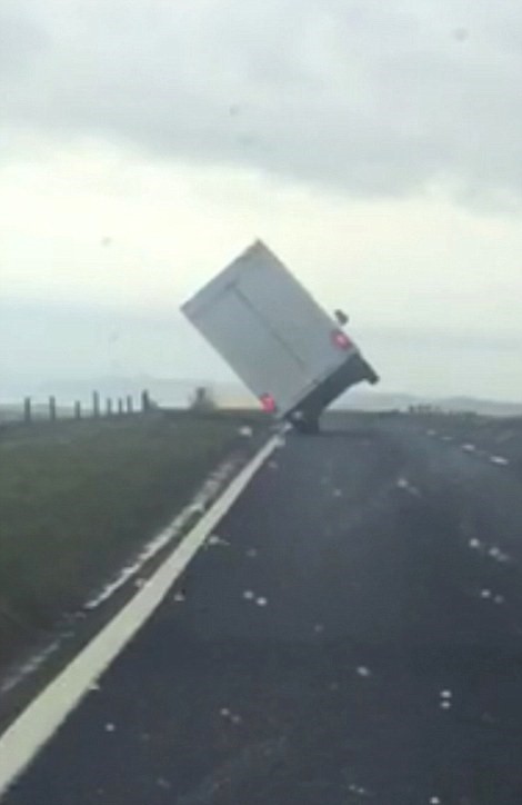 BRIDPORT – Un camion che stava viaggiando vicino a Bridport nel Devon inglese, si è cappottato a causa della forte pioggia e vento che in queste ore sta colpendo di nuovo la Gran Bretagna L’incidente è avvenuto sull’autostrada A35: l’automobilista Jacqui Sieger viaggiava in macchina dietro al mezzo pesante ed ha ripreso il momento in cui il conducente lotta per provare a controllare il camion prima che finisca di fianco fuori strada.