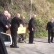 PENRYN – Una bara viene spinta in salita verso il cimitero di Penryn in Cornovaglia. Il carro funebre si è rotto sulla strada del funerale che si tiene nella chiesa di Sta Gluvias e così la bara di Julie Wilson morta di polmonite all’età di 56 anni viene trasportata a mano. Il video è stato registrato dal vedovo Tug di 57 anni che ha parlato di “episodio divertente” nonostante l’occasione sia stata triste per lui e per tutti i presenti.