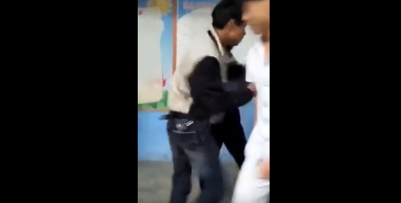 Nel video si vede l’insegnante che si avvicina ad uno studente per prendere il compito appena terminato. Il ragazzo, a quanto pare, sembra rifiutarsi di consegnarlo: a questo punto, il professore decide di mettergli le mani addosso.