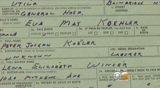 Nel 1954 la donna ha cominciato a cercare la madre e 50 anni dopo ci è riuscita. Le ricerche cominciarono dopo che uno zio le disse che si chiamava Eva e che era nata a Utica sempre nello Stato di New York. A quel punto, la donna aveva cominciato a telefonare ad un paio di ospedali di Utica, restringendo l’area di ricerca. Alla fine è riuscita a trovare il certificato di nascita.