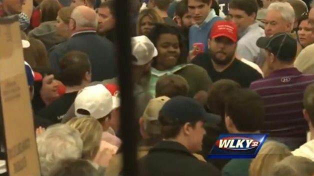 LOUISVILLE – Una donna di colore viene allontana a male parole dall’International Convention Center di Louisville nel Kentucky. La donna, poco prima aveva contestato Donald Trump. Shiya Nwanguma viene quindi invitata alla porta e presa a spintoni prima da un veterano e poi dagli uomini della sicurezza.