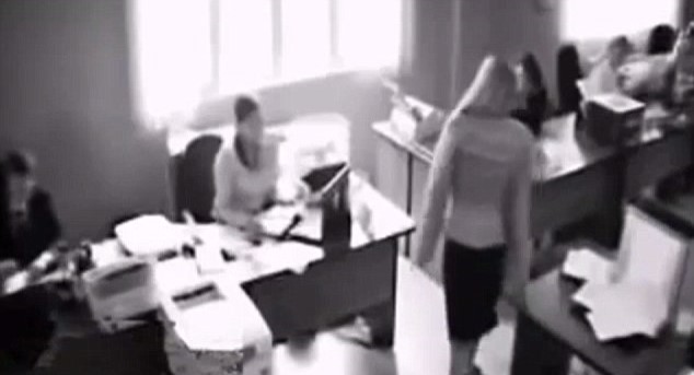 Nel video si vede una donna bionda che cammina fino ad una finestra. I colleghi non osservano la sua camminata forse per paura di incrociare il suo sguardo. Ad un certo punto, la donna apre la finestra e si butta di sotto. I colleghi provano a questo punto ad intervenire ma è ormai troppo tardi (video sconsigliato ai lettori più sensibili).