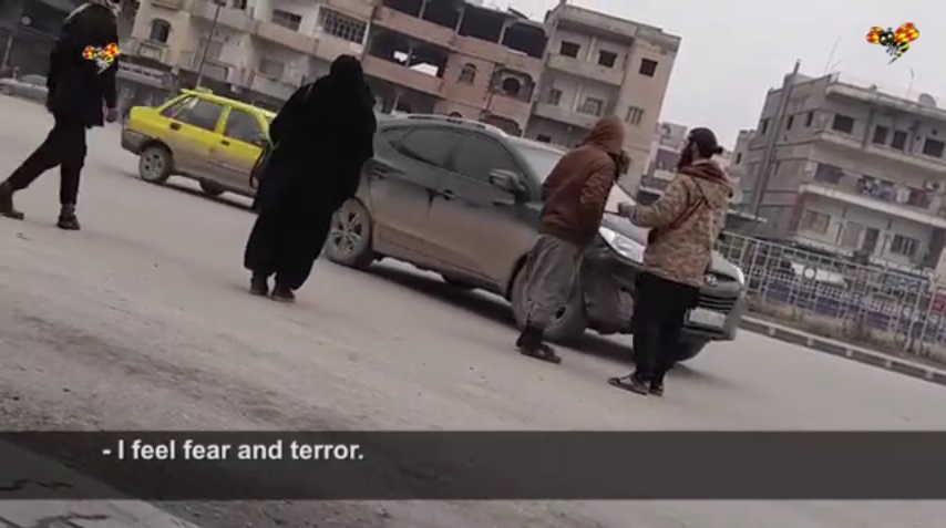 Girando per Raqqa si arriva nella piazza in cui avvengono le lapidazioni delle donne e davanti a una chiesa divenuta commissariato della polizia, quindi nel quartiere residenziale adesso abitato dai foreign fighter: chi viveva lì è stato allontanato se non ucciso. Il video si chiude con la svestizione dal niqab e la parole delle due donne che sognano il ritorno alla libertà”.