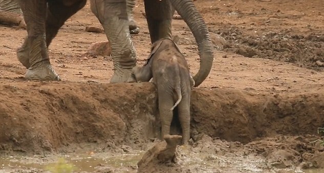 ROMA – Un piccolo elefante finisce in un laghetto di fango all’interno del Kruger National Park in Sudafrica. L’animale fatica ad uscire: in suo soccorso arrivano altri elefanti anziani, tra cui sua madre.