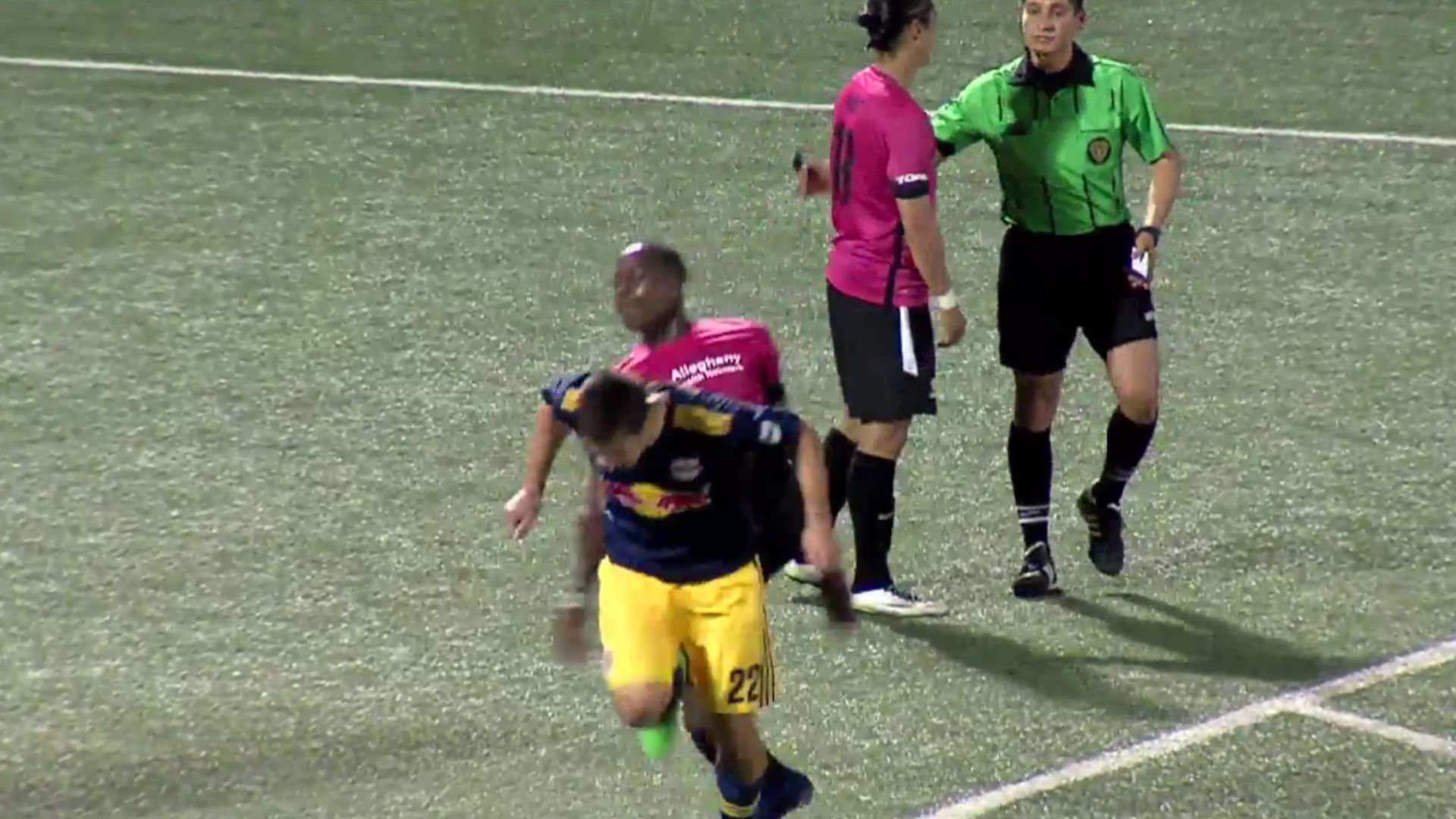 La reazione da cartellino rosso ha costretto Ouimette a lasciare il campo in barella. Il proprietario dei Riverhounds Tuffy Shallenberger, si è scusato con i tifosi e con la squadra avversaria che ha vinto fuori casa: “Voglio scusarmi con i tifosi, con i Red Bulls II e con Karl Ouimette per ciò che è accaduto alla partita di ieri sera. L’azione di Romeo non è rappresentativa di quello che fa la nostra squadra per aiutare a promuovere e a far crescere questo sport.”