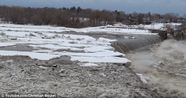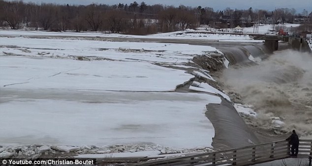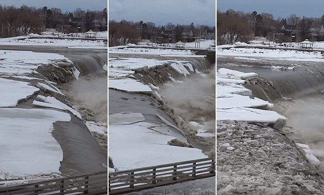 CHARNY -La natura regala ancora uno volta uno spettacolo che lascia senza parole. In Canada, il fiume Chaudière è stato ricoperto per tutto l’inverno da un’enorme distesa di neve e ghiaccio, dovute alle temperature polari che colpiscono questa parte del paese. Lo “show” comincia quando il ghiaccio raggiunge la cascata: la lastra superficiale si disintegra in una miriade di grandi fogli di ghiaccio prima della caduta, e poi si polverizza.