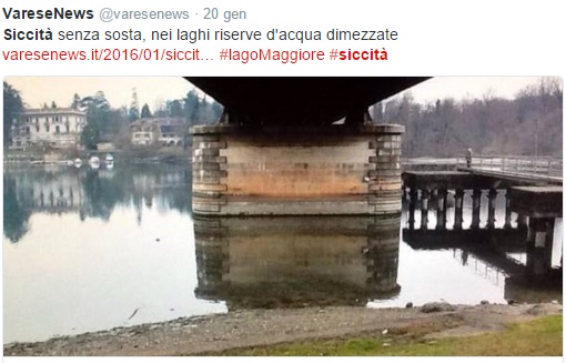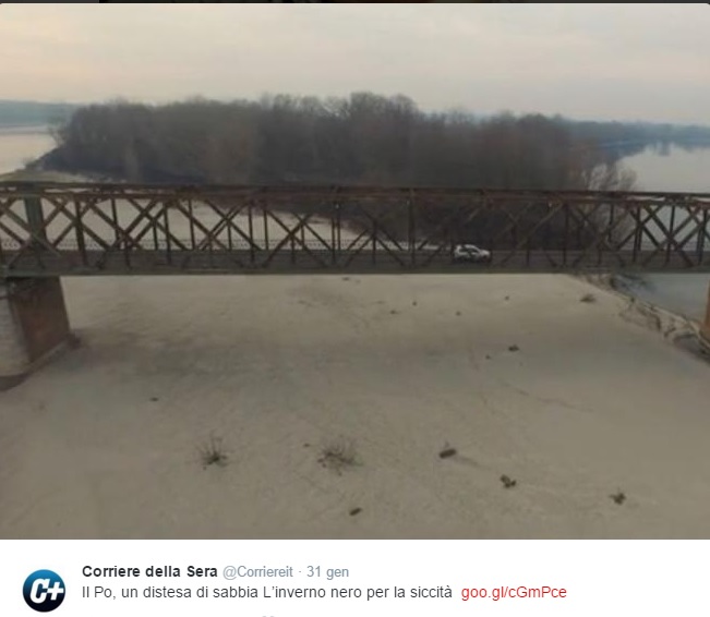 “Il vero problema oggi è che a un’estate molto arida, con tanto di dichiarazione di “crisi idrica” da parte dell’Autorità di Bacino del Po, è seguita una stagione autunnale altrettanto secca (se si escludono i brevi e disastrosi nubifragi di settembre nel Piacentino). Nel novembre 2014 sul Po ci furono almeno quattro piene, nel 2015 neanche una. E le riserve di acqua e neve sulle montagne sono ai minimi”.