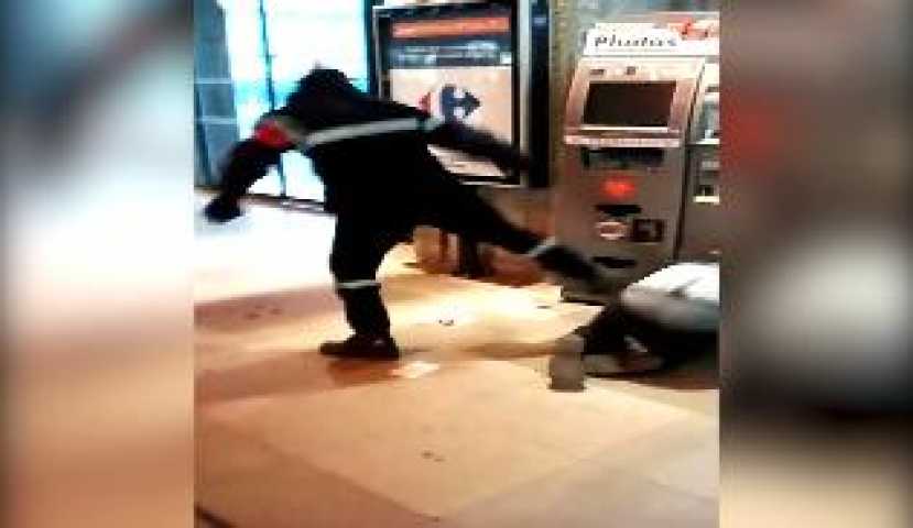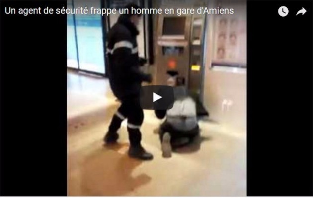 AMIENS – Francia, agente sicurezza picchia barbone inerme ad Amiens. Un agente di sicurezza picchia un senzatetto senza motivo alla stazione di Amiens in Francia. Il video è stato ripreso da un passante e postato su Facebook. Il filmato ha scatenato moltissime proteste: l’agente prende a calci senza motivo l’uomo a terra e viene ad un certo punto fermato da due persone che stanno assistendo alla scena senza reagire fino a quel momento.