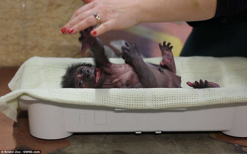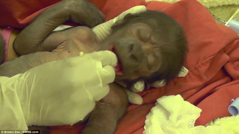 BRISTOL – Alla nascita, questa gorilla femmina pesava 900 grammi. Per farla nascere all’ospedale di Bristol in Inghilterra, è stato necessario un parto cesareo eseguito dal ginecologo David Cahill, arrivato allo zoo direttamente dal locale ospedale di maternità.