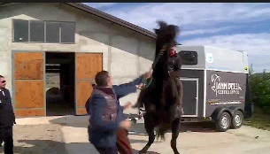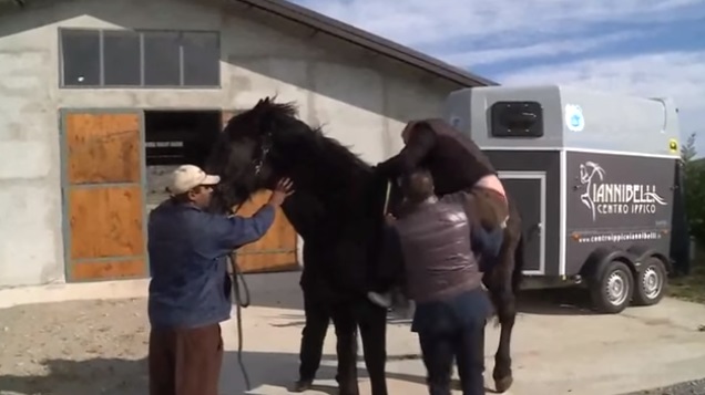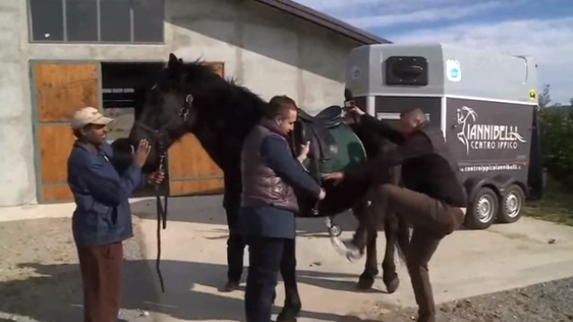 ROMA – L’approccio col cavallo va male sin dalle prime battute: il giornalista non sembra proprio un cavallerizzo provetto e fatica parecchio per salire. L’animale, evidentemente infastidito e spaventato dalla manovra, si imbizzarrisce e il giornalista Rai cade a terra, fortunatamente senza conseguenze.