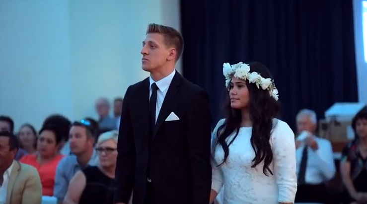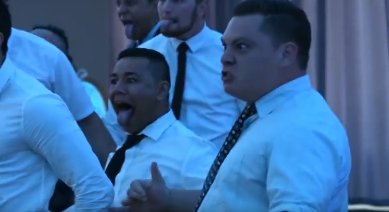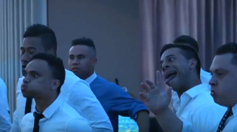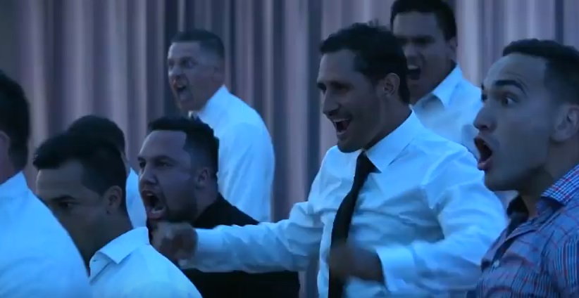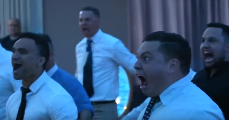 WELLINGTON, NUOVA ZELANDA – Haka al matrimonio, gli sposi si commuovono eย danzano con gli invitati.ย Il video รจ stato pubblicato dalla pagina Facebook “I’m Proud to be Tongan”. Nel filmato l’Haka – la danza tradizionale del popolo maori, quella utilizzata dai giocatori di rugby della Nuova Zelanda prima di ogni match – organizzata a sorpresa, dai testimoni e dagli invitati, durante un matrimonio in Nuova Zelanda. E la coppia di sposi,ย Benjamin e Aaliyah Armstrong, non riesce a trattenere la commozione durante le danza. I due sposi poi, sorpresi e commossi, decidono danzare con gli altri invitati.