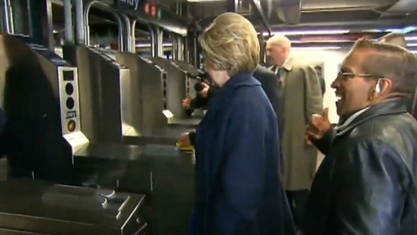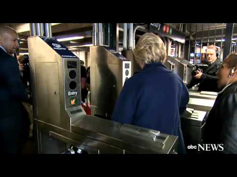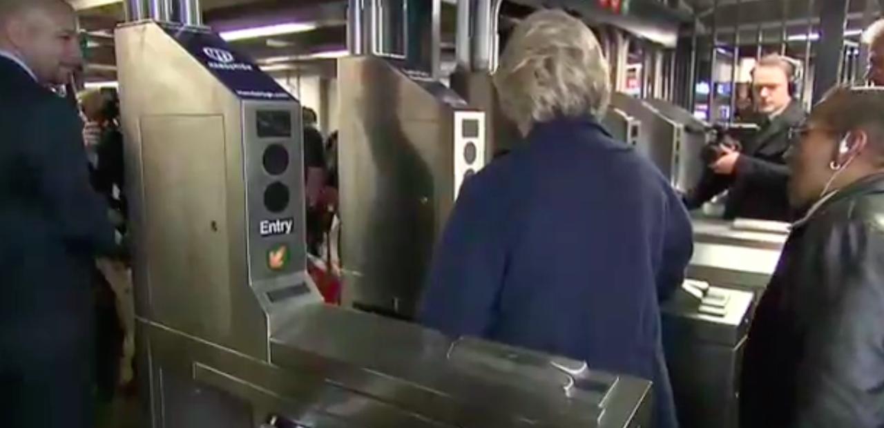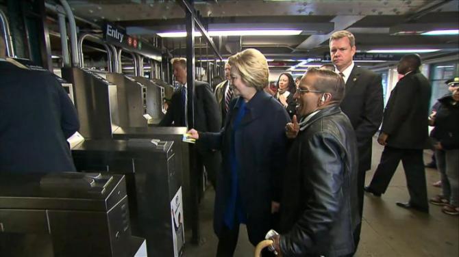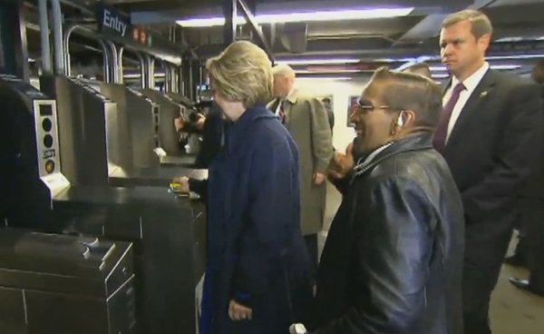 La candidata ha però problemi all”ingresso: la sua MetroCard non viene passata nel modo corretto e le porte per l’accesso ai binari non si aprono. La Clinton è costretta a ripetere l’operazione diverse volte prima di riuscire ad entrare.