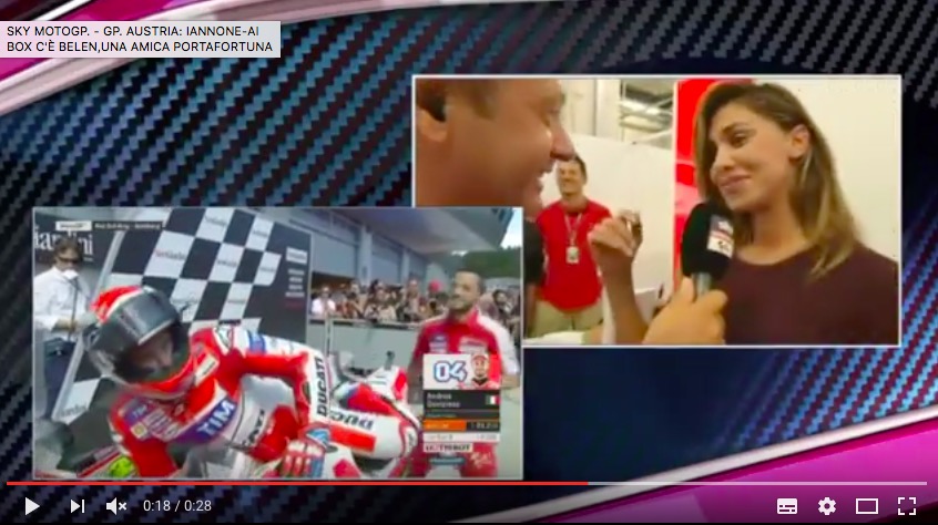 Il successo Ducati era atteso sul Red Bull Ring, circuito dalle medie più elevate del mondiale, sul quale ha primeggiato fin dalle libere grazie alla potenza straripante del suo motore. Sulla griglia di partenza Iannone (autore anche di pole e giro veloce) ha giocato d’azzardo montando la morbida al posteriore, unico tra i top rider: “Con il mio ingegnere di pista ci siamo presi una grande responsabilità, ma alla fine ha pagato”. Scelta che negli ultimi 10 giri gli ha consentito di aumentare il ritmo, passare Dovizioso, che invece aveva preferito una mescola dura, ed andare a vincere. “Sono partito senza spingere, anche per risparmiare un po’ di benzina ed ora sono felicissimo. Finalmente un grande risultato, dopo quattro anni di lavoro con queste persone stupende. So che a fine stagione andrò via, ma adesso conta solo il presente. Ora si parte per Brno, vediamo quanto saremo competitivi”.