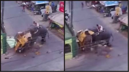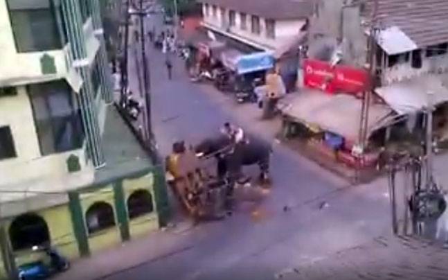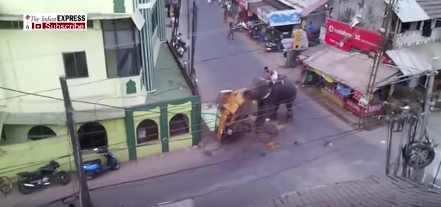 KOZHIKODE (INDIA) – Un elefante è impazzito dal nulla e ha cominciato a distruggere tutto ciò che aveva intorno, a cominciare da un risciò che si trovava per strada. Per fortuna nessuno si è fatto male. L’episodio è avvenuto a Kozhikode, nel sud dell’India.