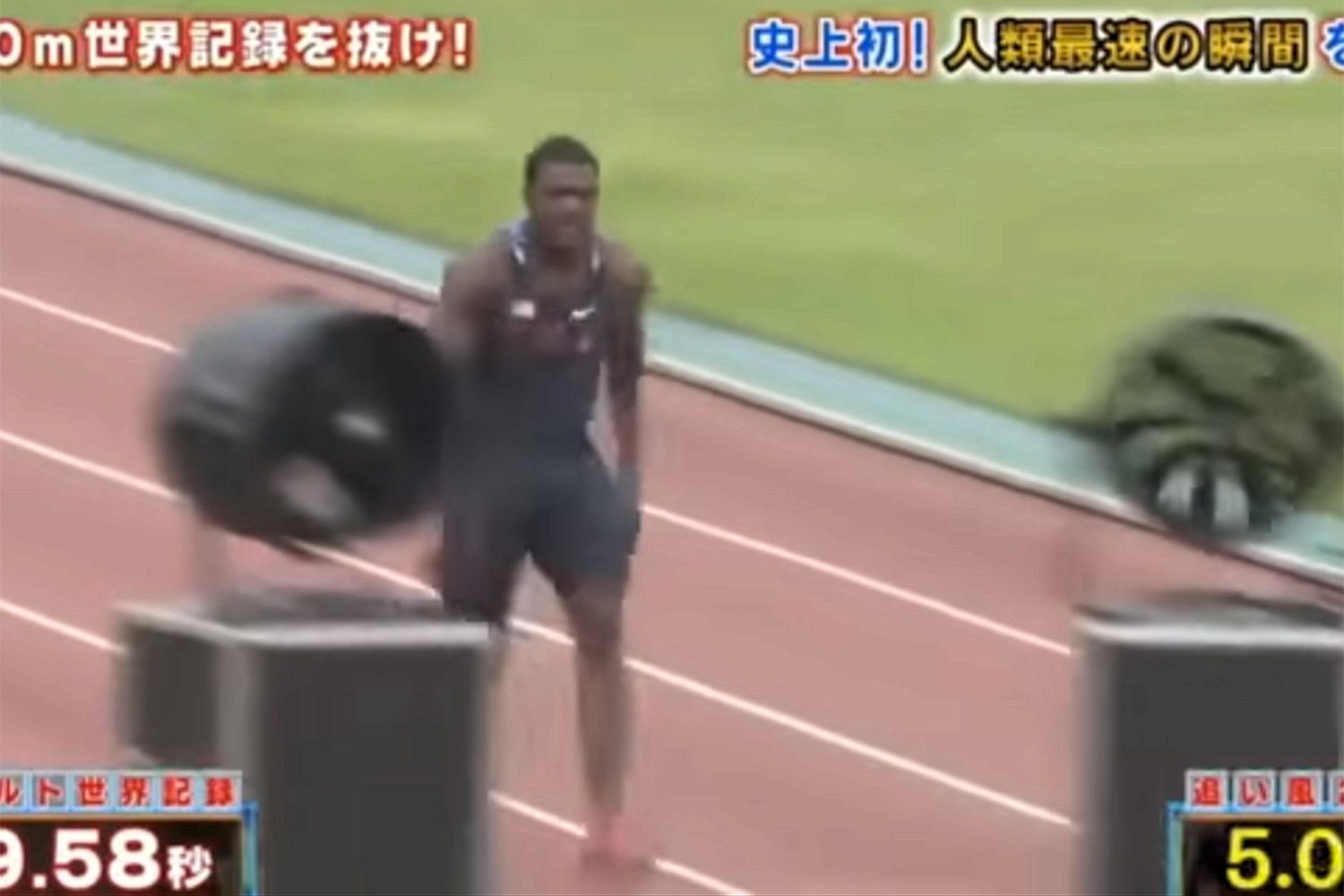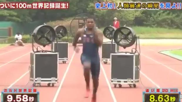 Accade nella trasmissione televisiva giapponese “Kasupe!”: Gatlin ha corso i 100 metri sospinto da un ventilatore gigante in partenza e altri lungo la pista. Il vento lo ha aiutato ad abbassare il primato mondiale di ben 13 centesimi, portandolo da 9”58 a 9”45. Il vento generato dai macchinari era infatti dieci volte più forte del consentito: questo ha permesso al corridore di essere molto più veloce del normale.