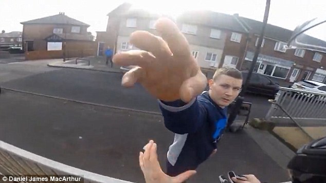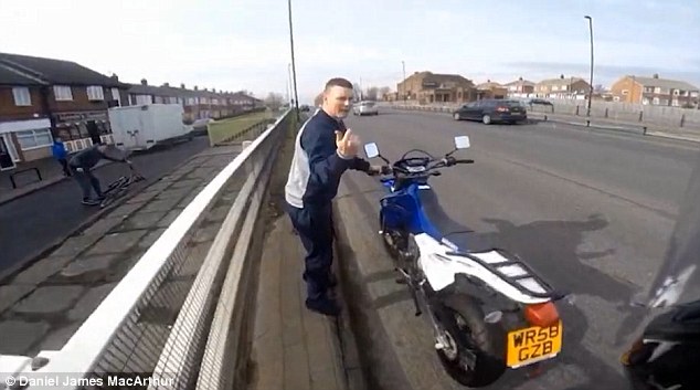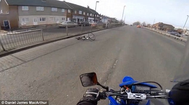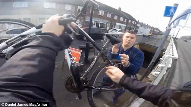 La scena si svolge su una strada di Newcastle, in Inghilterra. Quando ha visto la bici in mezzo alla carreggiata il centauro ha pensato bene di rimuovere l’ostacolo per evitare incidenti e preservare la sicurezza degli altri utenti della strada. Non poteva immaginare che mentre compieva una buona azione, alle sue spalle c’era qualcuno in agguato pronto a saltare sulla sua moto e filarsela.