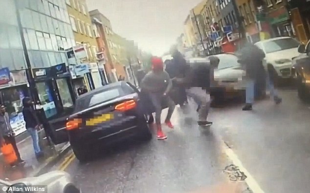 Accade a New Road nel quartiere di Aldgate, zona a est di Londra: cinque persone circondano un’Audi nera e la prendono a calci. Poi scappano via non appena vedono l’arma estratta dalla persona che sta seduta all’interno che, come si vede nel filmato è quello che indossa un cappello rosso e una felpa grigia. Il motociclista Allan Wilkins che sta sull’altra corsia riprende la scena con la sua dashcam montata sul cruscotto.