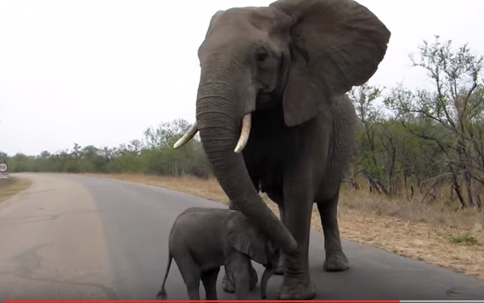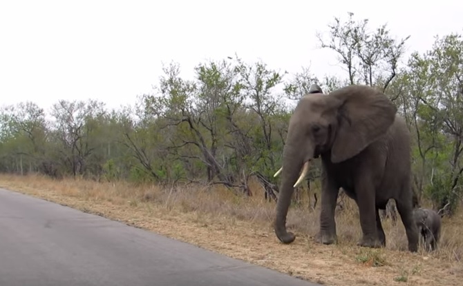 YOUTUBE Mamma elefante “difende” cucciolo dai paparazzi