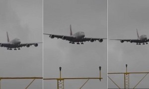 Quadrimotore, doppio ponte e in grado di trasportare fino a 853 passeggeri. Il gigante dei cieli, l’A380 della Emirates, se l’è vista brutta nel cielo di Manchester. Il volo, proveniente da Dubai, era in fase di atterraggio quando ha dovuto affrontare le violente raffiche di vento portate dalla tempesta ‘Katie’, che si sta abbattendo in questi giorni sul Regno Unito. Nel video si vede chiaramente la battaglia del jet nel tentativo di toccare terra. E tutto si è risolto nel migliore dei modi: il volo della Emirates è atterrato sulla pista dell’aeroporto di Manchester, con il sollievo di tutti i passeggeri a bordo. Il filmato è stato postato dalla World Aviation HD.