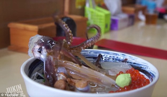 ROMA – Durante una cena in un ristorante giapponese viene catturato il momento in cui un ragazzo di nome Shu San si gode una prelibatezza a base di sushi: il più noto cibo della cucina del Sol Levante. Questa volta, ad essere mangiato crudo è un polpo intero che nella ciotola in cui è stato posizionato accanto alle verdure e alle spezie, e che sembra tornare in vita.