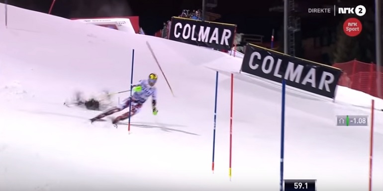 MADONNA DI CAMPIGLIO – Paura a Madonna di Campiglio, durante lo slalom speciale di Coppa del Mondo di sci. Spettacolare – e poteva anche anche esserci un serio infortunio – nel corso della seconda manche, la caduta di un drone per le riprese tv. È precipitato in pista, disintegrandosi subito dopo il passaggio di Marcel Hirscher, che non è sembrato accorgersi di quanto stava accadendo: l’ha scampata bella.