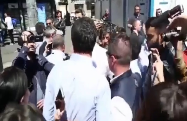 ROMA – Il leader della Lega Matteo Salvini ieri, mercoledì 20 aprile, si è recato a Roma per appuntamenti elettorali. A Tiburtina, il numero uno del Carroccio ha parlato ai microfoni delle tv, mentre a pochi metri un contestatore solitario lo apostrofava al grido di “razzista”.