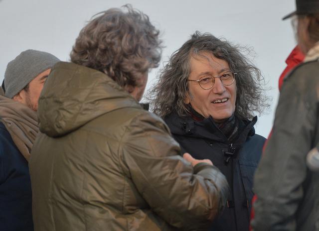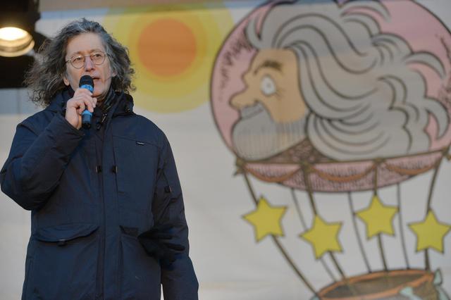 Gianroberto Casaleggio sul palco in Piazza della Vittoria in occasione del terzo V-Day, 01 dicembre 2013 a Genova.