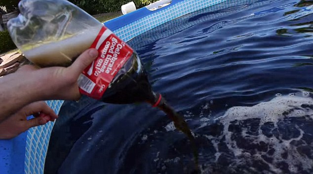 ROCKLIN – Uno youtuber californiano ha riempito una piscina da giardino di 1500 galloni di Coca Cola (circa 5600 litri n.d.r) per poi gettarci dentro una bella manciata di Mentos. Taras Maksimuk di Rocklin in California, ha poi convinto il suo amico Ryan a gettarcisi dentro per provare l’effetto di aver una specie di Jacuzzi in giardino.