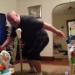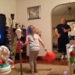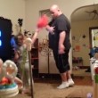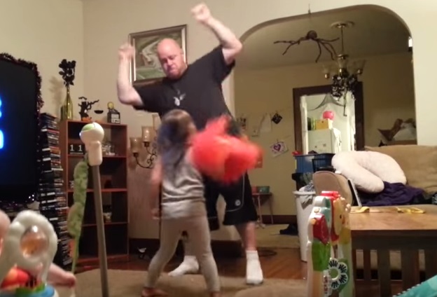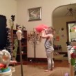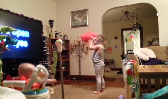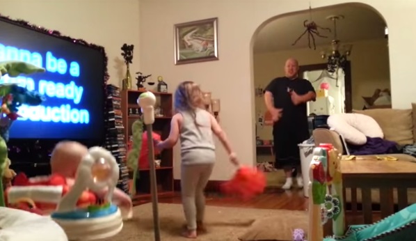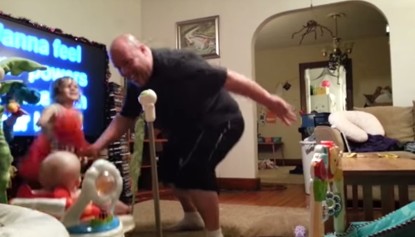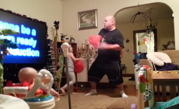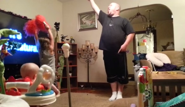 Ma quando ha guardato le registrazioni la mamma ha scoperto che in sua assenza il marito ha rubato la scena ai piccoli rivelandosi il migliore dei baby sitter possibili. Nel filmato si vede il marito entrare in salotto e, abbandonata la bacinella che ha in mano, dare il via a una robot-dance, ballando con leggerezza nonostante la corporatura, per poi cantare Extraterrestrial di Katy Perry con perfetto tempismo e agitando in aria i pon pon della figlia. Questo il video caricato su YouTube.