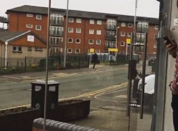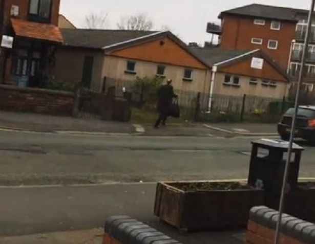 Nel filmato, ripreso per primo dal Manchester Evening News, si vede l’uomo che indossa un completo, un cappotto e porta una valigetta, correre lungo la School Lane verso la stazione Didsbury Village Metrolink nel disperato tentativo di prendere il tram.
