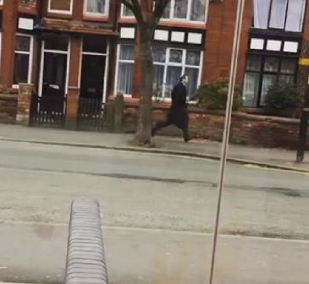 Nel filmato, ripreso per primo dal Manchester Evening News, si vede l’uomo che indossa un completo, un cappotto e porta una valigetta, correre lungo la School Lane verso la stazione Didsbury Village Metrolink nel disperato tentativo di prendere il tram.
