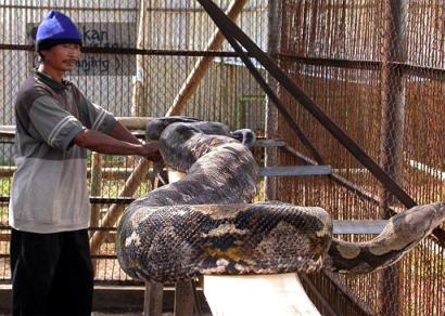 C’è voluta più di mezz’ora per catturare il serpente lungo 7,3 metri del peso di circa 250 kg, trovato in un cantiere edile di Paya Terubong, nel distretto di Penang. A trovarlo sono stati i lavoratori che si sono fatti fotografare con il rettile, insieme alla squadra della protezione civile locale che lo ha recuperato. Il pitone reticolato potrebbe contendersi il Guinness dei Primati con Medusa, serpente che vive in cattività nel Missouri (Usa), lungo 7,67 metri e del peso di 158 kg, che detiene il titolo dal 2011.
