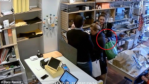 Uno dei taccheggiatori indossa un mette orologio Paulin da 200 sterline sul polso, mentre continua ad intascare diversi oggetti, con il negoziante che si trova poco più in là. Le riprese sono state mostrate dal Daily Record e riprese dal Daily Mail, e mostrano i ladri che ridono mentre si aggirano per il negozio alla ricerca di oggetti da rubare.