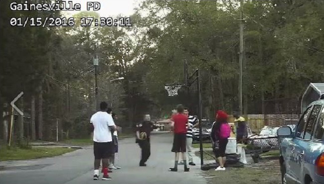 ”L’agente White è intervenuto per una chiamata per alcuni ragazzi che giocavano a basket ”rumorosamente” in strada. Di sera. Per divertimento. Senza commettere reati”, evidenzia la polizia di Gainsville dalla propria pagina Facebook.