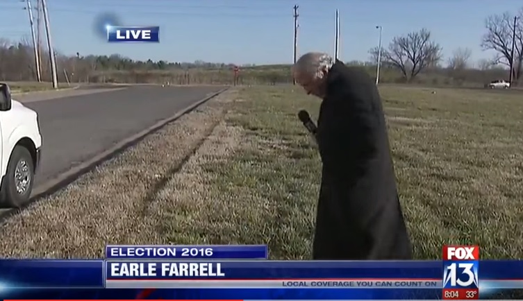 MEMPHIS – Il reporter Earle Farrel lavora per la tv Fox 13 di Mephis. L’inviato si trova un giorno di anticipo nella zona in cui si sarebbe tenuto un raduno del candidato alla primarie repubblicane Donald Trump.