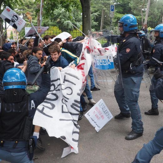 BOLOGNA – Scontri tra manifestanti e polizia a Bologna dove Matteo Salvini, leader della Lega Nord, ha incontrato il Rettore di Bologna, Francesco Ubertini, alla facoltà di Ingegneria. I due si sono intrattenuti per un breve colloquio, mentre, nel viale d’accesso alla Facoltà i collettivi si fronteggiavano con la Polizia, che ha reagito con un paio di cariche. Quando Salvini è uscito dall’incontro è stato però accolto da diverse decine di studenti di Ingegneria, usciti dalle lezioni, che lo hanno contestato duramente e fischiato in maniera pacifica sotto lo sguardo del cordone di sicurezza delle Forze dell’ordine.