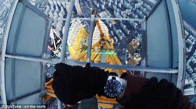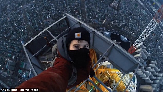 La torre alta quasi 500 metri, è rimasta in parte incompiuta: per accedervi sono passati attraverso una rete di sicurezza e da chi su una gru d’acciaio ancora fissata alla struttura. Nei venti gelidi della mattina, hanno raggiunto la cima della torre ed hanno scattato selfie