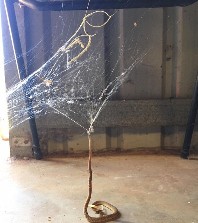 “E’ la cosa più australiana che abbia mai visto. Googlate serpente catturato da un ragno nel web. E’ così comune da spaventare”.
