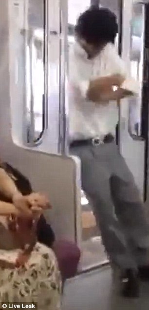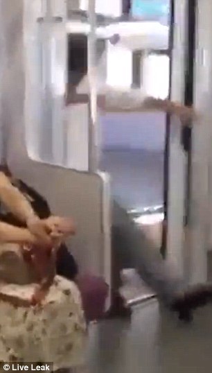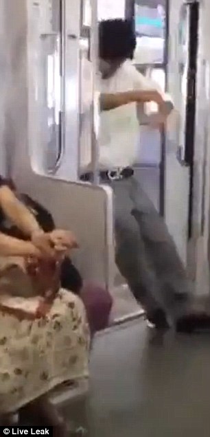 Nel filmato si vede l’uomo addormentarsi in piedi, con la schiena poggiata contro la porta scorrevole del vagone. Quando il treno arriva in stazione le porte si aprono automaticamente e l’uomo cade in banchina, sotto gli occhi stupefatti degli altri viaggiatori. Prova inutilmente ad aggrapparsi alle porte, ma alla fine finisce di schiena per terra, rischiando di rompersi la noce del collo.