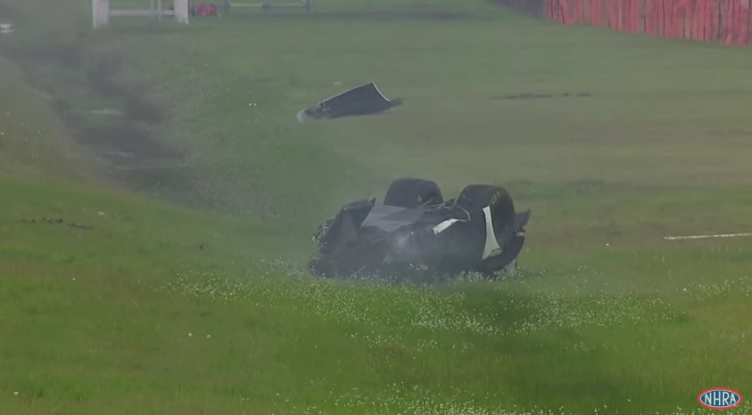 ICYMI: This #NHRA crash from yesterday was vicious. Thankfully, only a broken arm for Sidnei Frigo. https://t.co/S84MNfbyLT