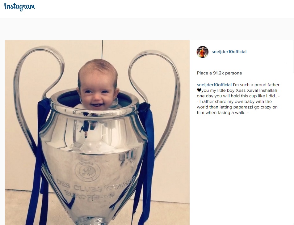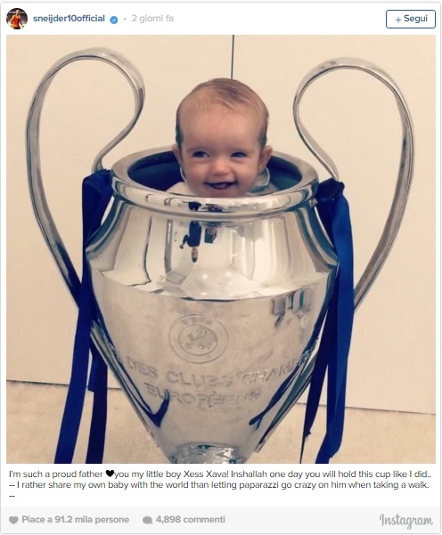 ISTANBUL – Sneijder mette il figlioletto…nella Champions. “Sono un padre così orgoglioso, mio piccolo Xess Xava! Inshallah un giorno solleverai questa coppa come ho fatto io”. E’ questo il messaggio pubblicato su Instagram dal mediano del Galatasaray Wesley Sneijder che posta un video con il figlioletto che ride e si diverte dentro…la Champions League.